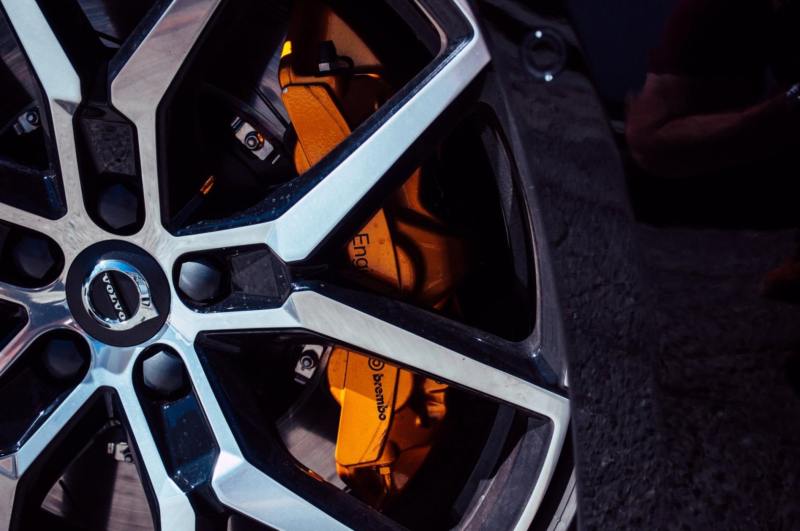 Tym bardziej w wersjach R-Design ze sportowymi zderzakami, które w dolnej części przypominają zderzaki z motorsportu. A już w ogóle obłędnie wygląda… w wersji Polestar Engineered. Na prezentacji mieliśmy do dyspozycji samochody w czarnym kolorze, ale Polestar Engineered wyróżniają się złotymi detalami. Złote są zaciski hamulcowe i nakrętki na wentyle w kołach. Bardzo udane połączenie.