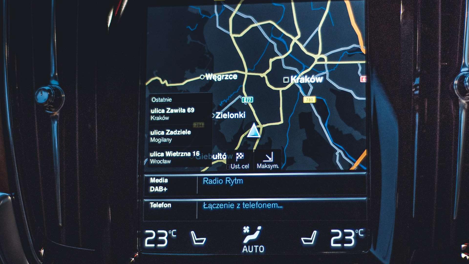 Centrum dowodzenia w S90 to znany nam już system Sensus. To jeden z najlepszych tego typu systemów, jakie możemy dostać na rynku. Świetnie reaguje na dotyk, pracuje szybko, bez opóźnień, zupełnie jak przyzwoitej jakości tablet. Wraz z Sensusem dostajemy też dożywotnią subskrypcję aktualizacji map.