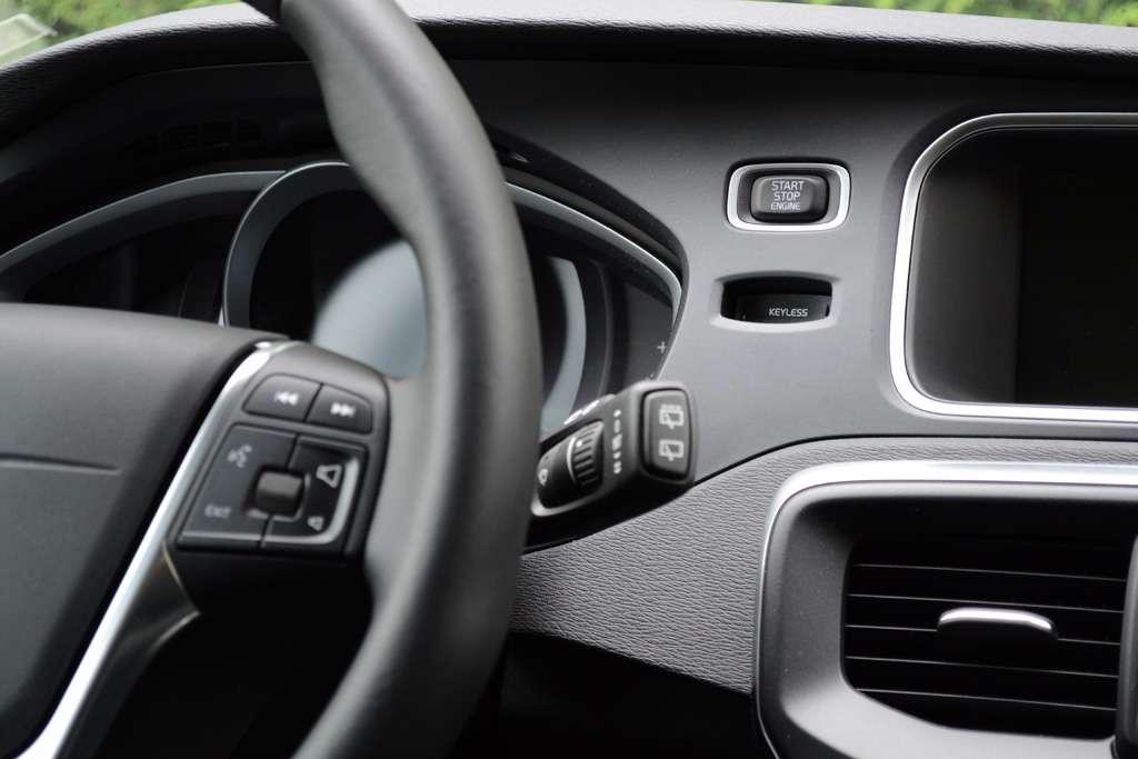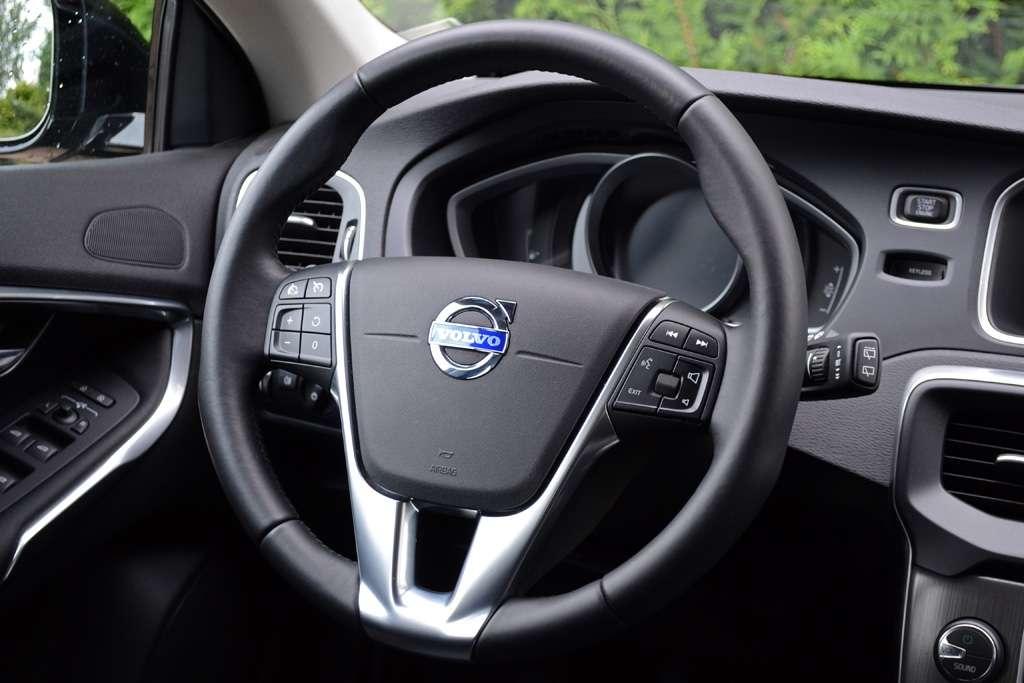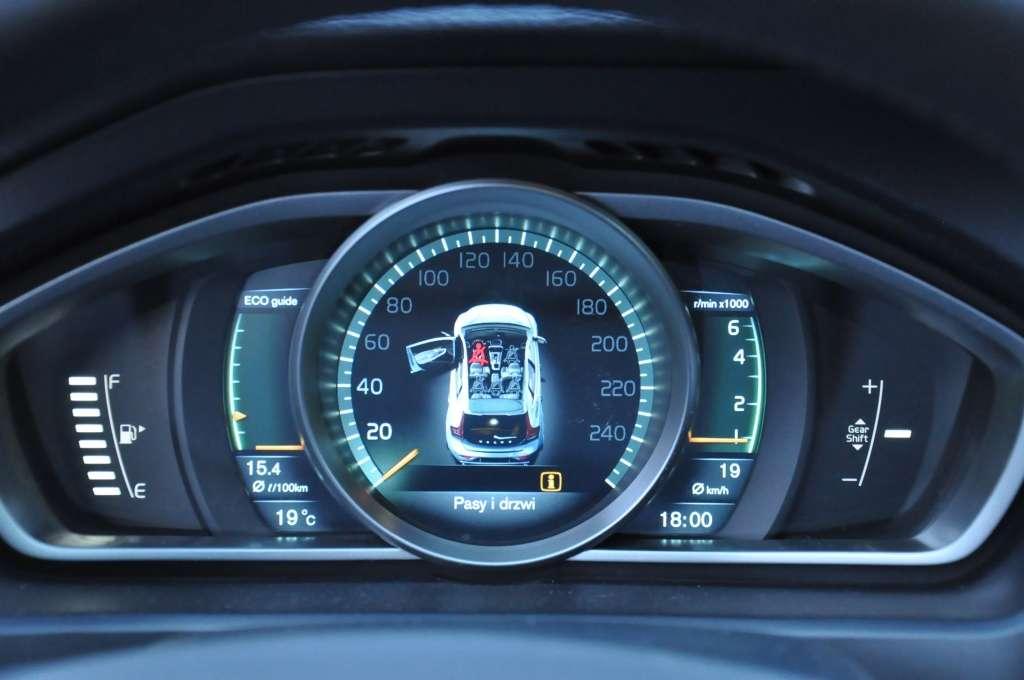 Projektanci wnętrza postawili połączyć wysoką ergonomię i przejrzystość kokpitu z nowoczesnymi smaczkami. Wolna przestrzeń za płaską konsolą środkową od kilku lat jest standardem w przypadku Volvo. Nowością jest jednak lusterko wewnętrzne z minimalnym obramowaniem oraz ciekłokrystaliczny wyświetlacz zamiast klasycznych wskaźników. Możliwość zmieniania wyglądu "zegarów" z pewnością przypadnie do gustu amatorom nowoczesnej elektroniki. Nawet oni mogą mieć jednak problem z zaakceptowaniem obrotomierza, który w dwóch z trzech dostępnych trybów (Eco, Elegance i Performance) ma nietypową formę pionowego słupka. Wygląda efektownie, ale okazuje się dużo mniej czytelny od analogowego wskaźnika. Obrotomierz staje się świetnie widoczny dopiero w sportowym trybie Performance. Wybieranie biegów "na słuch" raczej odpada. Kabina pasażerska Volvo V40 została bardzo dobrze odizolowana od zgiełku ulic i odgłosów pracującej mechaniki pojazdu. Tym bardziej irytowały wyraźnie słyszalne stuki w drzwiach. Widać nawet Volvo zdarzają się choroby wieku dziecięcego.