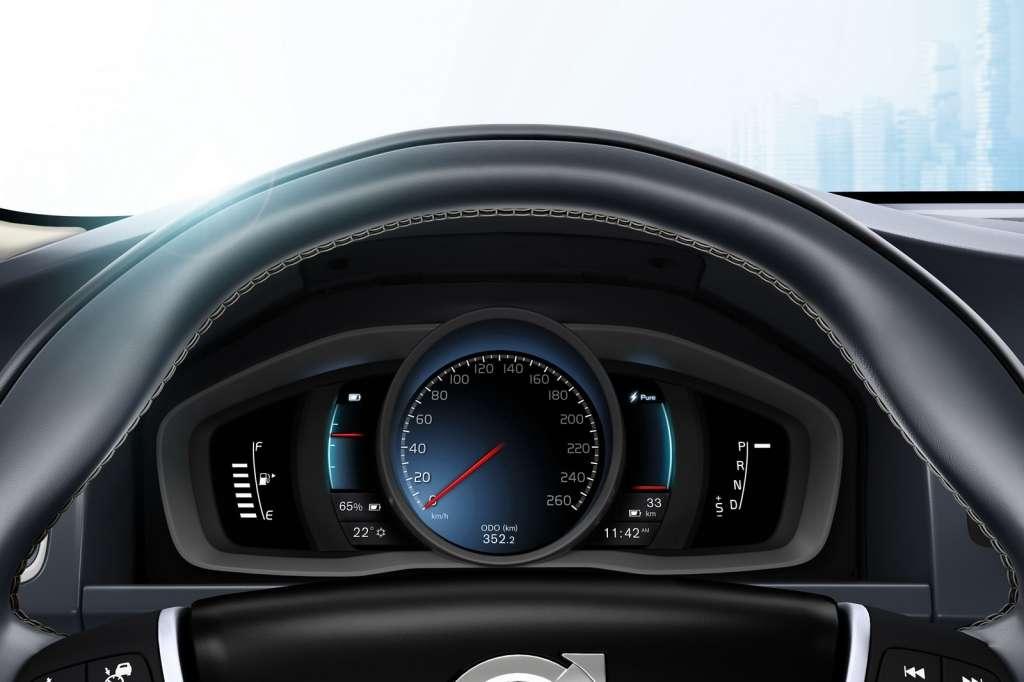 Delikatnych modernizacji doczekało się również wnętrze nowego Volvo V60. Uwagę zwraca przede wszystkim nowy zestaw wskaźników, informujący kierowcę o zużyciu paliwa i energii elektrycznej, stanie naładowania baterii, a także liczbie kilometrów możliwej do przejechania bez tankowania/ładowania pojazdu.
