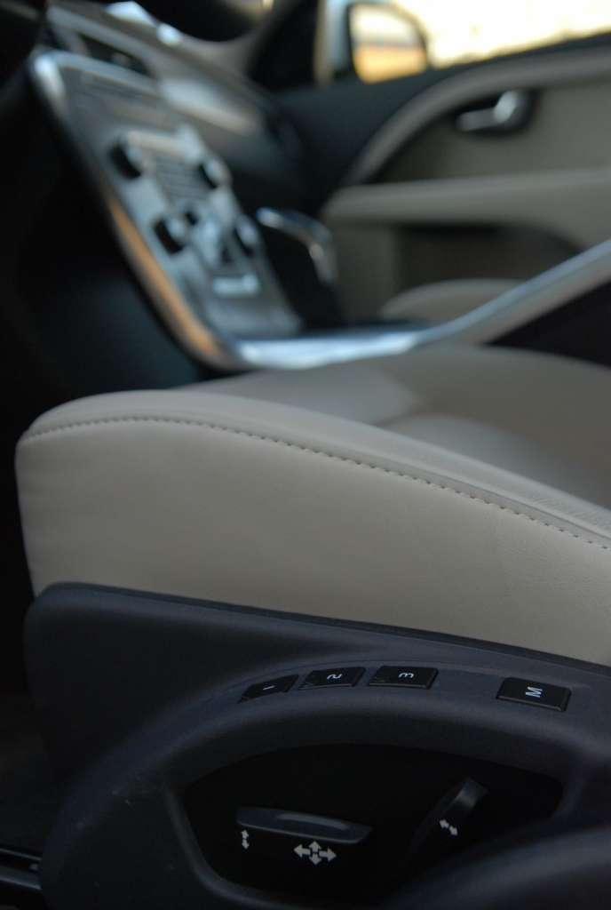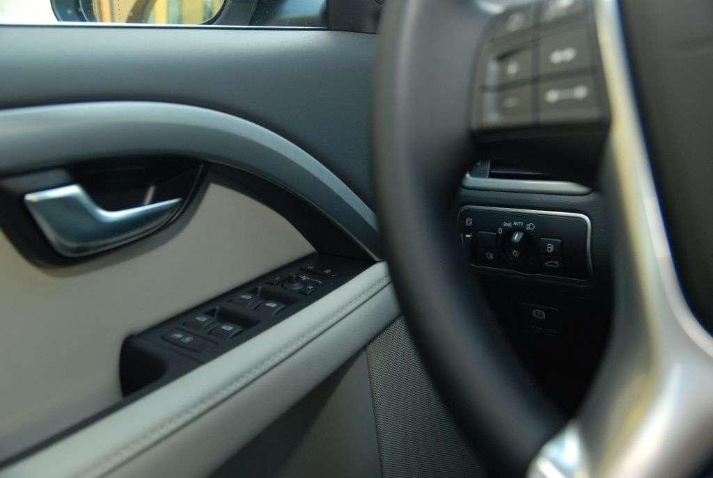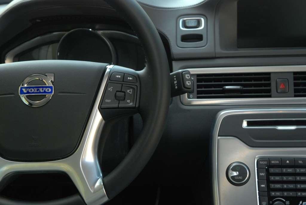 Wewnątrz auta wrażenie pewności i bezpieczeństwa nie znika. Dominuje tu przestrzeń i prostota klasycznej linii, całkiem jak z zewnątrz. Designerzy testowanej wersji postawili na jasną skórę, wykonując z niej tapicerkę oraz wykańczając deskę rozdzielczą, której smaku dodają elementy aluminiowe. Schowany pod daszkiem ekran LCD znajduje się na wysokości liczników, co znacznie ułatwia korzystanie z nawigacji lub radia. Wszystkie ustawienia dotyczące pojazdu również znajdziemy w komputerze, począwszy od przejechanych kilometrów, czy spalania po ustawienia związane z bezpieczeństwem. Do sterowania komputerem może służyć środkowy panel lub pokrętła znajdujące się w kierownicy. Obsługa jest intuicyjna i wygodna. Panel komputera wraz z lewarkiem do zmiany biegów zabudowany został w jednym aluminiowym elemencie. Rozwiązanie to z pewnością ułatwi utrzymywanie czystości wewnątrz auta i jednocześnie dzięki spójnej kompozycji z całością podkreśla swój klasyczny charakter. Dążenie Volvo do zachowania prostoty i elegancji sprawiło, że auto praktycznie pozbawione jest skrytek. Ukryta w rozsuwanym panelu przestrzeń oferuje miejsce na napoje dla kierowcy i pasażera oraz niewielką skrytkę z zapalniczką. Najwygodniejszy schowek mieści się w podłokietniku, który wyposażono w wejście USB oraz AUX. Kolejny mały schowek na drobne przedmioty znajdziemy tuż za aluminiowym panelem. Niestety ze względu na konstrukcję, dostęp do schowka jest niewygodny, przez co nie powinno się z niego korzystać w trakcie jazdy. Podobnie sytuacja ma się ze schowkiem po stronie pasażera. Umieszczony jest nisko i głęboko, co w połączeniu z małymi rozmiarami sprawia, że użytkowanie nie jest zbyt komfortowe. Wygląda jakby Volvo tworząc swoje auto chciało uniknąć bałaganu, jaki może powstać przez leżące luzem przedmioty, jednak w tym wypadku elegancja niekoniecznie idzie w parze z wygodą.
