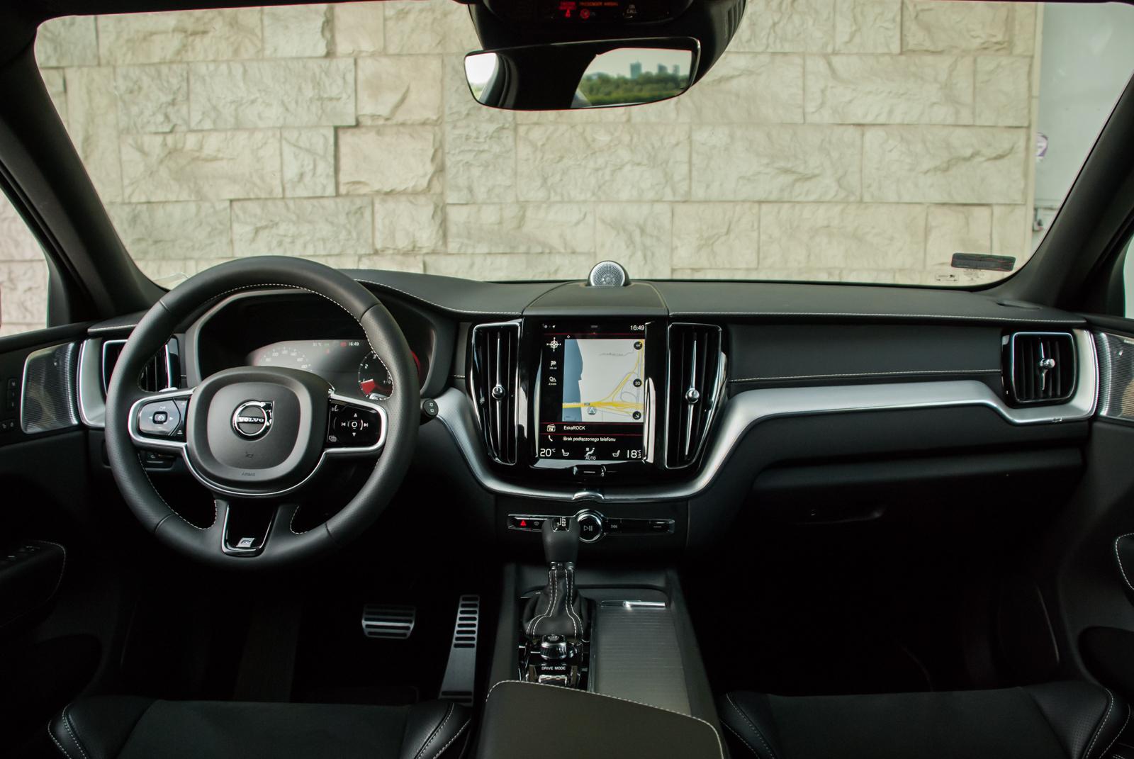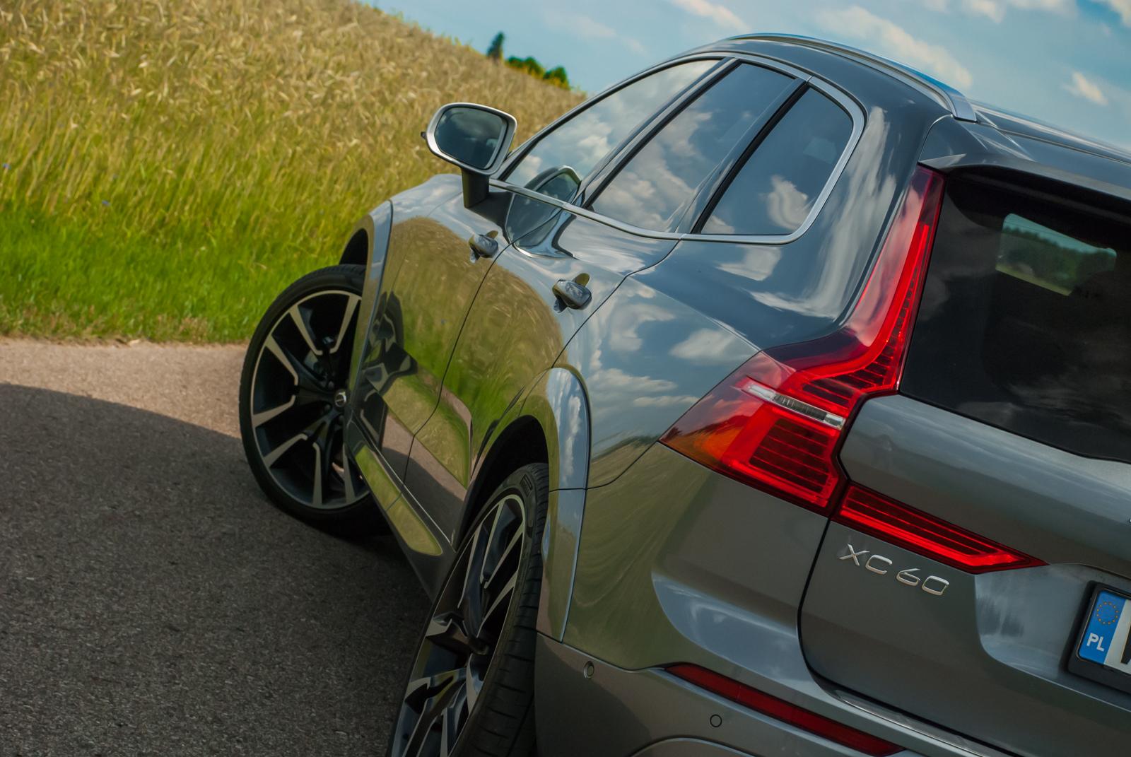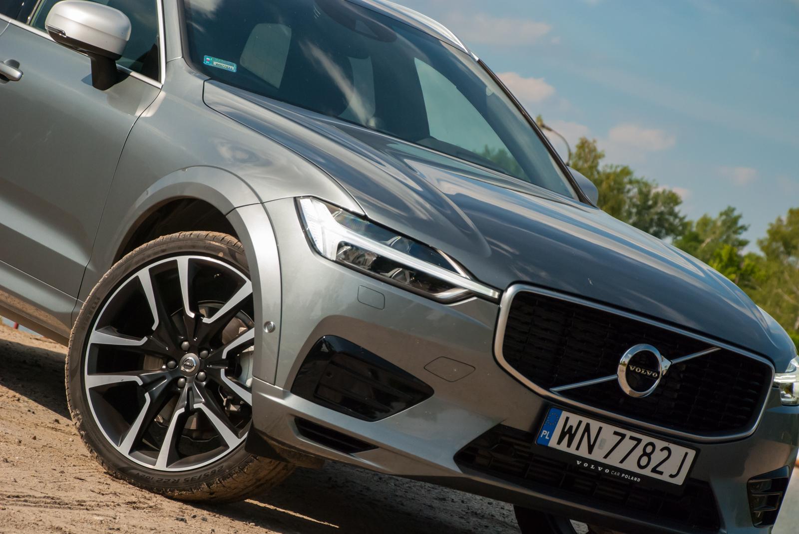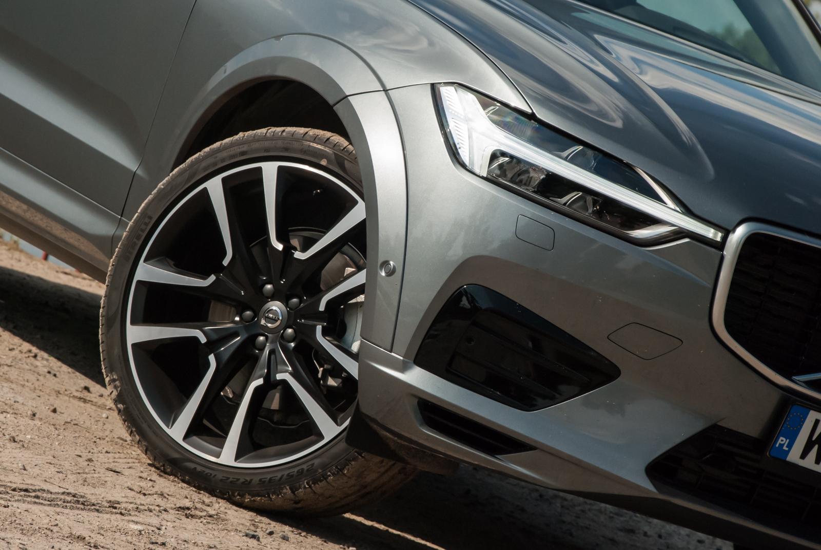 Do testów przypadła nam grafitowa wersja w kolorze Osmium Gray (wymagającym dopłaty 3 700 zł), który świetnie podkreśla wszystkie dynamiczne przetłoczenia. W czerni (takie auto też było obecne na prezentacji) XC60 wygląda nieco smutno, a wszystkie ostre linie giną, zamiast podkreślać to, co powinny. Jednak w metalicznym graficie auto prezentuje się świetnie. Masywność potęgują aluminiowe felgi, które mogą mieć nawet 22 cale! Jednak wówczas dostojne Volvo zaczyna przypominać wóz amerykańskiego czarnoskórego rapera, a o komforcie podróżowania możemy raczej zapomnieć. Nasz testowy egzemplarz wyposażony był w mniejsze felgi, choć trzeba przyznać, że określenie „mniejsze” w odniesieniu do 20 cali brzmi dziwnie. I chyba była to najlepsza możliwa konfiguracja. Co by nie mówić, „osiemnastka” nie bardzo chce dobrze wyglądać w tak dużym aucie, a z kolei 22 wydaje się przerostem formy nad treścią i może skutkować koniecznością odwiedzenia stomatologa. 20-calowe alufelgi to idealny kompromis między świetnym wyglądem a praktycznością.