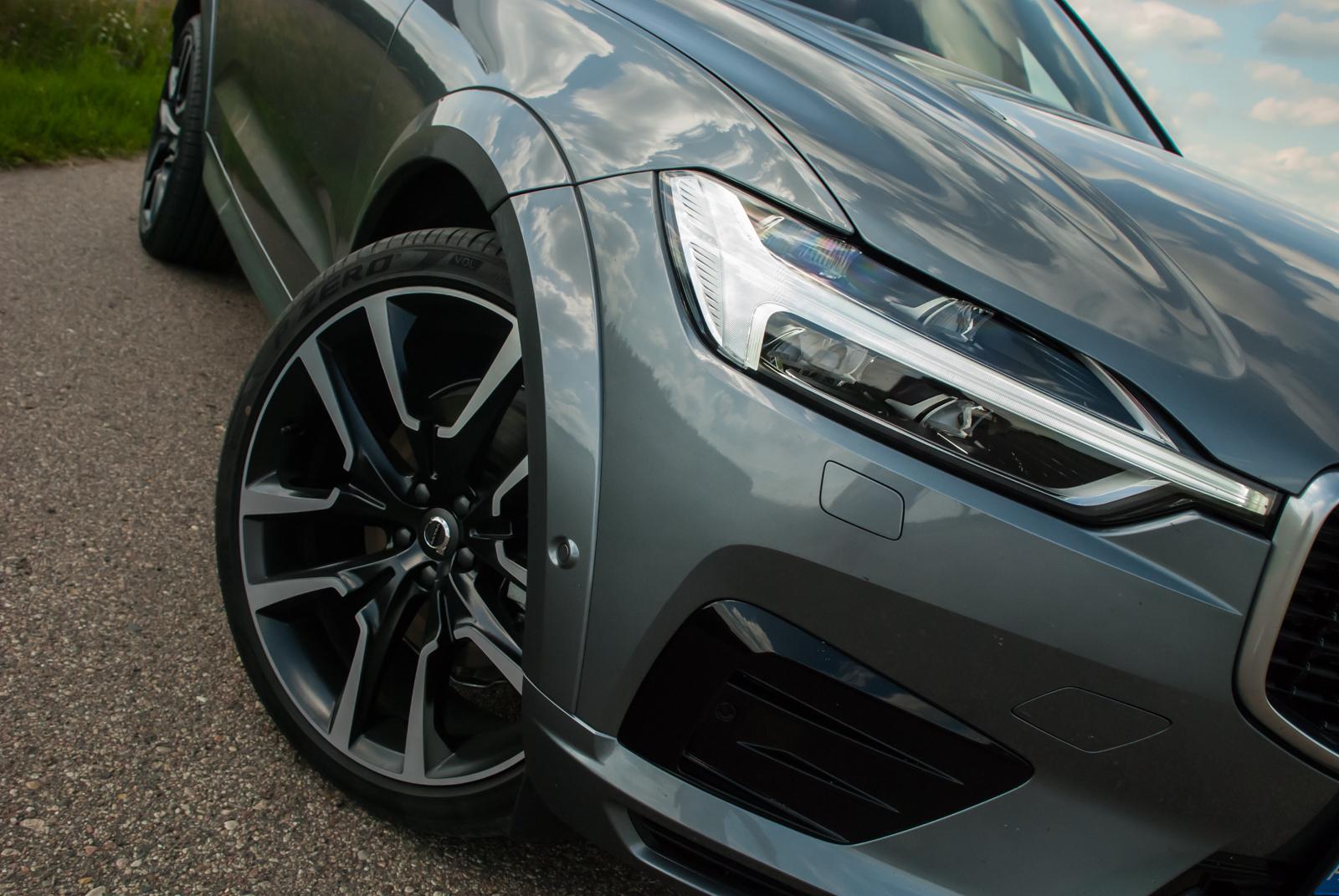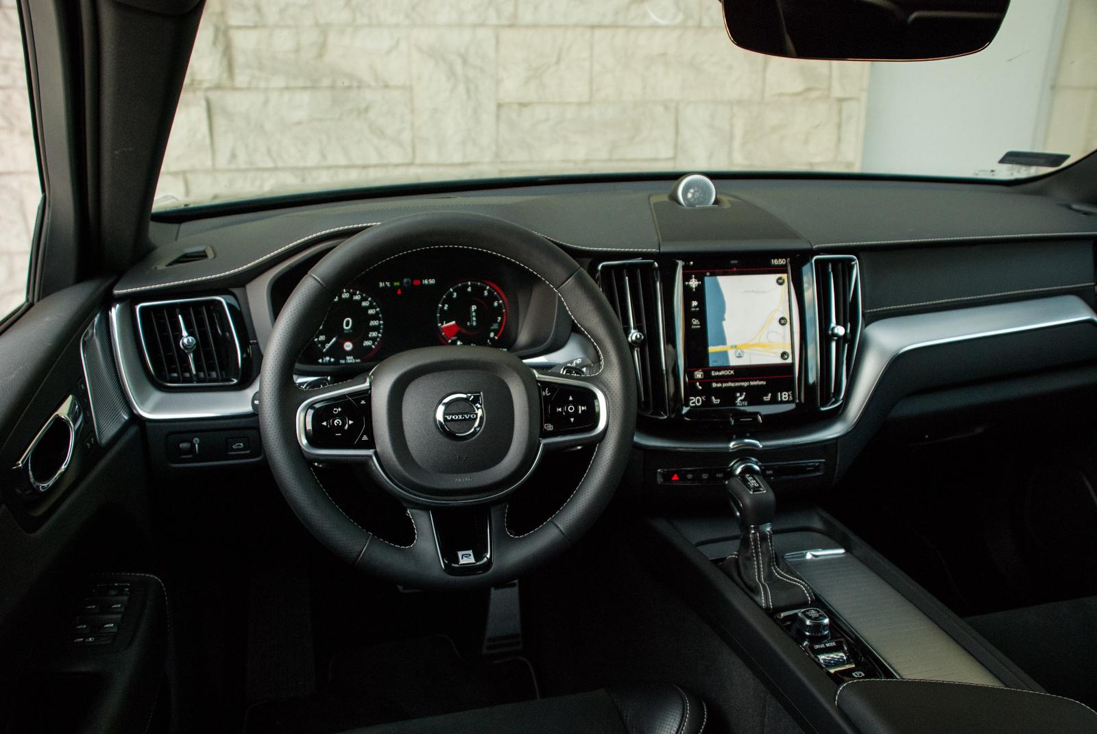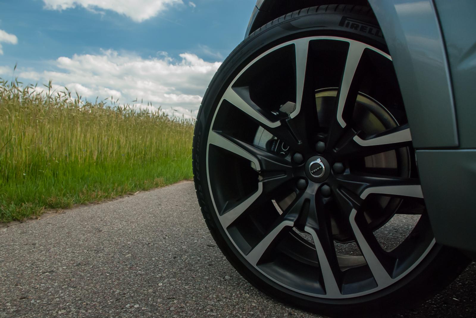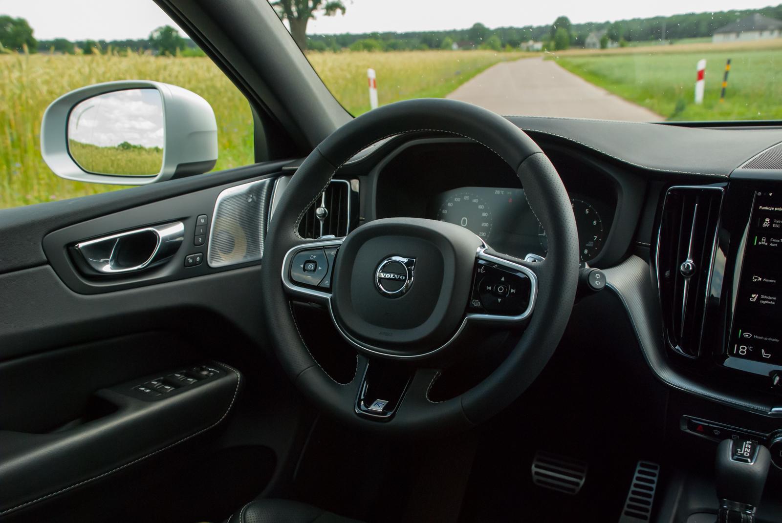 Do testów przypadła nam grafitowa wersja w kolorze Osmium Gray (wymagającym dopłaty 3 700 zł), który świetnie podkreśla wszystkie dynamiczne przetłoczenia. W czerni (takie auto też było obecne na prezentacji) XC60 wygląda nieco smutno, a wszystkie ostre linie giną, zamiast podkreślać to, co powinny. Jednak w metalicznym graficie auto prezentuje się świetnie. Masywność potęgują aluminiowe felgi, które mogą mieć nawet 22 cale! Jednak wówczas dostojne Volvo zaczyna przypominać wóz amerykańskiego czarnoskórego rapera, a o komforcie podróżowania możemy raczej zapomnieć. Nasz testowy egzemplarz wyposażony był w mniejsze felgi, choć trzeba przyznać, że określenie „mniejsze” w odniesieniu do 20 cali brzmi dziwnie. I chyba była to najlepsza możliwa konfiguracja. Co by nie mówić, „osiemnastka” nie bardzo chce dobrze wyglądać w tak dużym aucie, a z kolei 22 wydaje się przerostem formy nad treścią i może skutkować koniecznością odwiedzenia stomatologa. 20-calowe alufelgi to idealny kompromis między świetnym wyglądem a praktycznością.