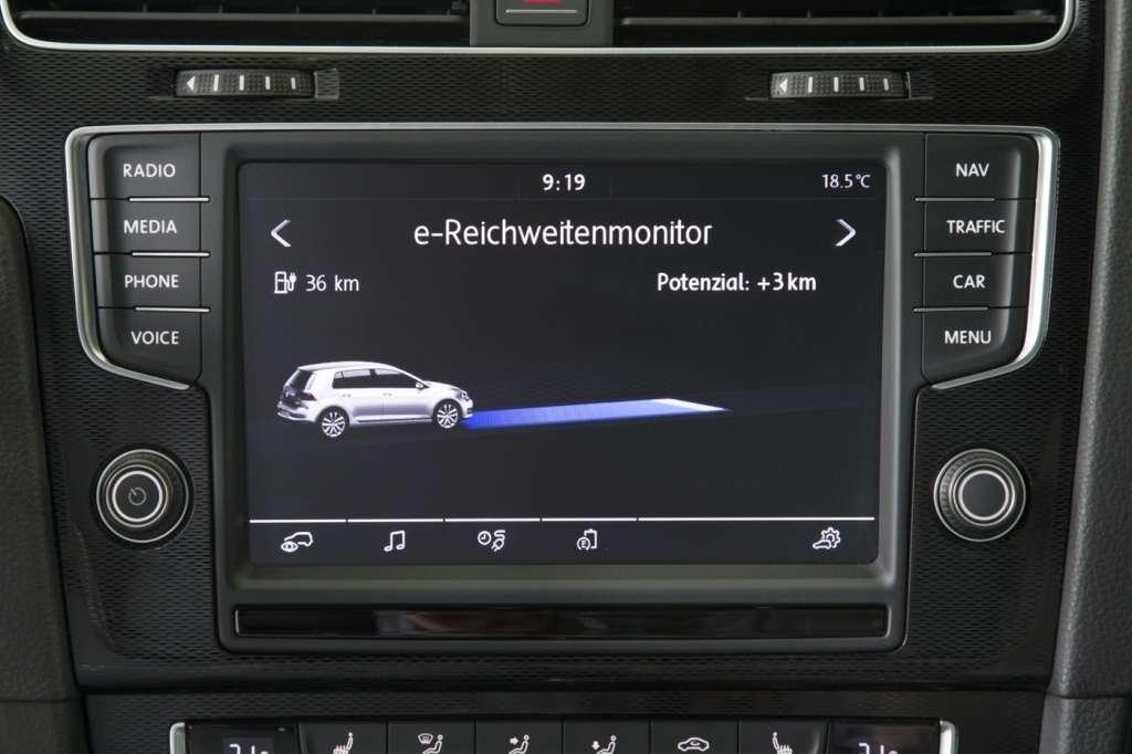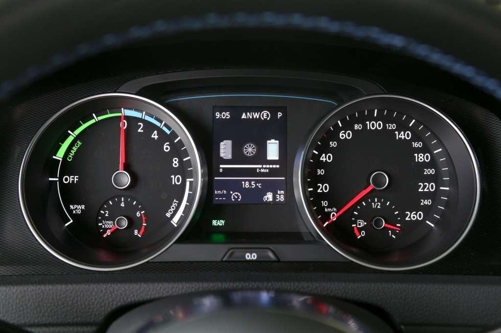 Podróżując Golfem GTE, możemy wybierać spośród pięciu zdefiniowanych trybów pracy. Auto uruchamiane jest najczęściej w zeroemisyjnym trybie elektrycznym zwanym E i korzysta wówczas tylko z silnika elektrycznego. Maksymalny zasięg, jaki jest w stanie uzyskać Golf GTE korzystając tylko z energii zmagazynowanej w bateriach to 50 km, a maksymalna prędkość to 130 km/h. W praktyce, podczas testów komputer pokazywał zasięg około 30 km, a więc jednak sporo mniej, niż deklarowany.
