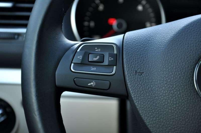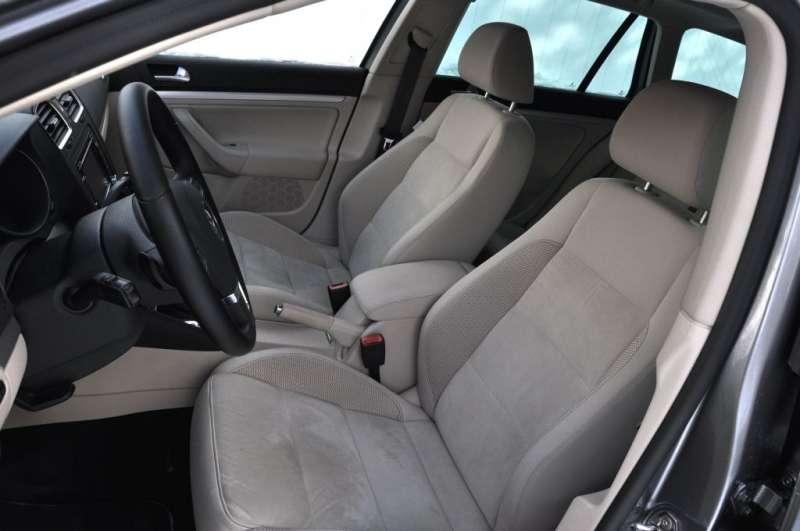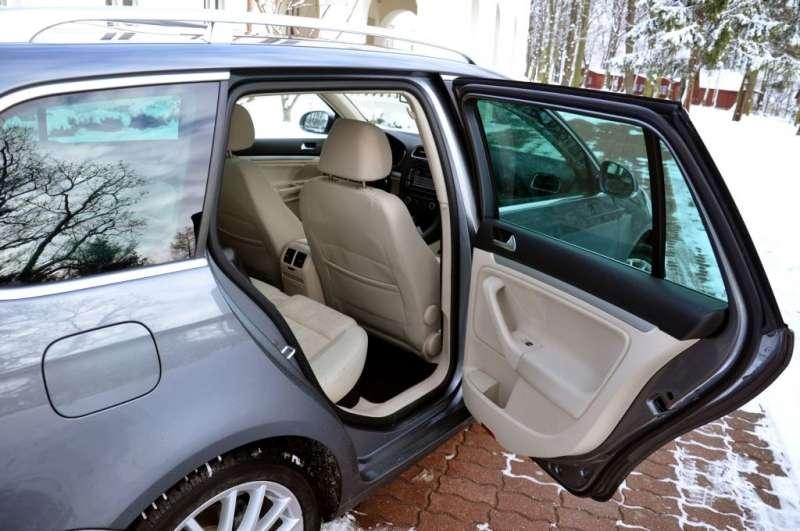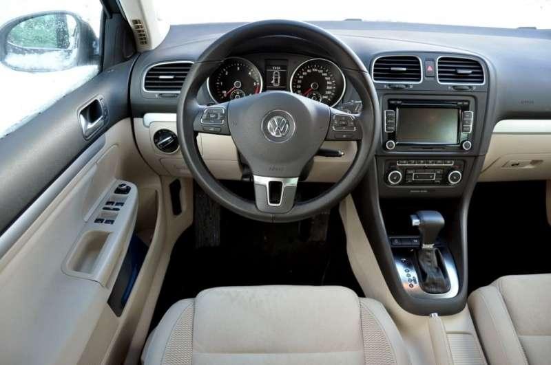 W środku auta ciężko znaleźć istotne różnice w porównaniu do hatchbacka. Przed kierowcą znajduje się ten sam dobrze znany kokpit. Uwagę zwraca doskonała jakość użytych materiałów i wykonania, w wersji Highline we wnętrzu nie zabraknie chromu ani skórzanych elementów wykończenia, kremowe welurowe fotele są dobrze wyprofilowane i wygodne a przestrzeń dla kierowcy nie budzi zastrzeżeń. Z tyłu miejsca także nie brakuje, choć raczej nie we trzy osoby. Dwie osoby natomiast bez problemu znajdą dość miejsca na długą komfortową podróż. Ergonomicznie Golfowi ciężko cokolwiek zarzucić, prócz drobiazgów takich jak brak schowka na okulary. Nad lakierem w czasie parkowania czuwają czujniki, które mamy w tej wersji wyposażenia zarówno z tyłu jak i z przodu auta. Wspomagane dodatkowo zamontowaną w tylnej klapie kamerą cofania znakomicie sprawdzają się na ciasnych parkingach i ulicach.