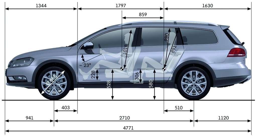 Zacznijmy może od wymiarów - długość Alltracka to 4771 mm, czyli dokładnie tyle samo, co Passat Variant. Również szerokość, mimo tego, że nadkola poszerzone są o plastikowe nakładki, jest identyczna: 1820 mm. Więc co uległo zmianie? Ano, inne są parametry wpływające na jazdę w terenie: w porównaniu z Passatem Variantem prześwit poprzeczny został zwiększony ze 135 mm do 165 mm. Zwiększeniu uległ również kąt natarcia z 13,5 stopnia do 16 stopni, a także kąt zejścia wynoszący 13,6 stopni (Passat Variant: 11,9 stopnia). Kierowcy mający do czynienia z offroadem wiedzą, że podczas jazdy w terenie równie ważny jest kąt rampowy, pozwalający na pokonywanie pagórków. W tym przypadku wartość poprawiła się z 9,5 stopnia do 12,8.