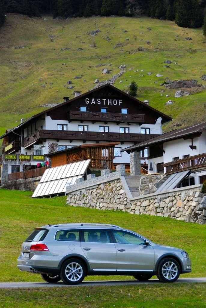 Tyle teorii - czas na wrażenia z jazdy. Jak już wspomniałem, do testów udostępniono nam auta wyposażone w silniki wysokoprężne o mocy 170 KM i dwusprzęgłowe skrzynie DSG. Pierwszego dnia do pokonania mieliśmy ok. 200 km autostrady z Monachium do Innsbrucka, a następnie niespełna 100 km krętych i uroczych górskich zawijasów. Alltrack po autostradzie prowadzi się prawie identycznie jak wersja Variant – niemal nie do wyczucia jest to, że jedziemy autem odrobinę wyższym. Kabina jest dobrze wyciszona, zawieszenie bez zastrzeżeń wybiera wszelkie nierówności i można powiedzieć, że podróż upływała w komfortowych warunkach. Ja, siedząc za kierownicą, miałem tylko cały czas wrażenie, że siedzę za wysoko, ale fotel stanowczo odmawiał dalszego obniżania siedziska. Również na krętych, górskich serpentynach Alltrack nie dawał wyprowadzić się z równowagi i sprawnie pokonywał kolejne zakręty. Tylko znów ten nieszczęsny fotel nie zapewniał zbyt dobrego trzymania bocznego, ale może to i lepiej, bo wtedy każdy trochę pokornieje za kierownicą i delikatniej operuje pedałem gazu. Muszę tu wspomnieć o spalaniu naszej testówki. Auto z czterema osobami na pokładzie, bagażnikiem wyładowanym prawie po sufit i uchwytem rowerowym na dachu, na odcinku 300 km (w większej części po autostradach austriackich i niemieckich) spaliło 7,2 litra ON na każde 100 przejechanych kilometrów, co uważam za bardzo dobry wynik.