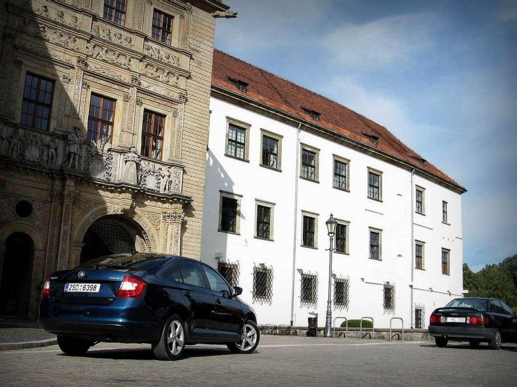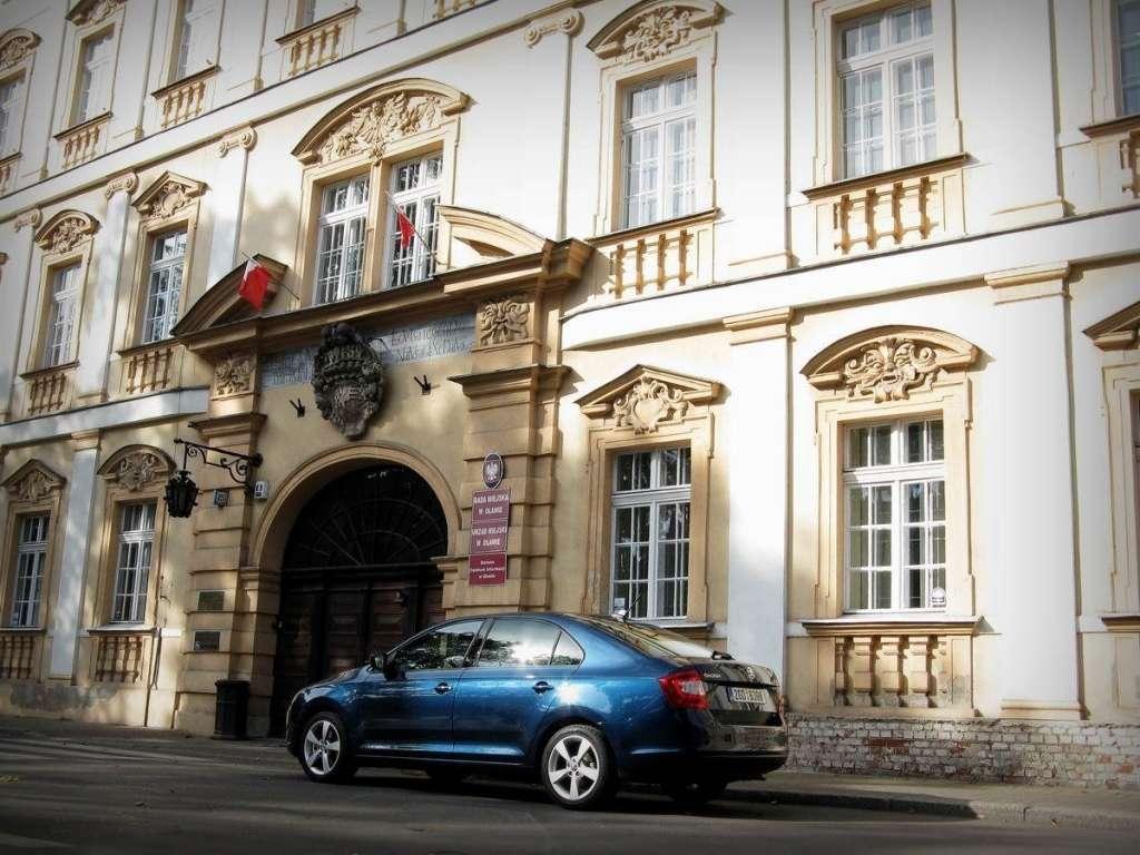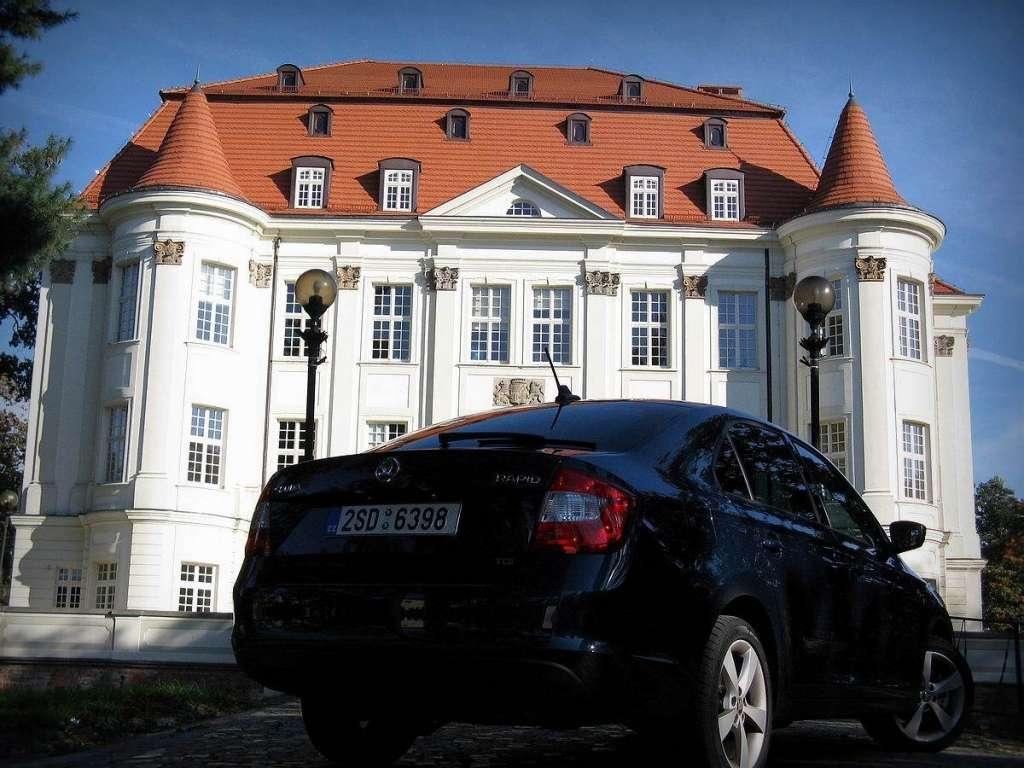 Złośliwi twierdzą, że w Leśnicy panuje już inna strefa klimatyczna w stosunku do pozostałej części miasta, ponieważ jest położona tak daleko od centrum. Ze śródmieścia prowadzi do niej tylko jedna główna droga, dlatego na spokojnie mogłem zastanowić się nad projektem przedziału pasażerskiego w Rapidzie – tradycyjnie utknąłem w korku, więc miałem na to mnóstwo czasu. Niektórzy lubią czarne wnętrza, jednak ciężko powstrzymać się od myśli, że panuje w nich klimat muzyki Marilyna Mansona. Na szczęście można sobie zażyczyć wykończenie szare lub beżowe - niestety tylko w droższych liniach wyposażenia. Kokpit sprawia dużo lepsze wrażenie niż w Fabii, ale za to gorsze niż w Octavii - materiały są dość twarde. Dźwignia zmiany biegów na szczęście nie przysłania panelu klimatyzacji – w dolnej części kokpitu znajduje się duży schowek, a wszystkie przyciski i pokrętła zostały przeniesione na górną i środkową cześć deski rozdzielczej. Ponadto są czytelne i łatwo dostępne. Co ciekawe – gniazdo USB znajduje się na widoku w okolicach tunelu centralnego. Lepiej nie zostawiać w nim pendrive’a na noc, jeśli rano szyby mają pozostać całe. Octavia ma złącze ukryte w schowku – to lepszy pomysł. Po moich wstępnych przemyśleniach na temat auta w końcu dotarłem do Leśnicy – miejscowa budowla naprawdę robiła wrażenie. Wcześniej była dworem książęcym, który został przekształcony w murowany zamek. Budynek był wielokrotnie przebudowywany aż w końcu spłonął w 1945 roku. Po remoncie stał się wizytówką Leśnicy, którą warto przy okazji odwiedzić. Jednak nie wszystkie pałace pełnią wyłącznie funkcję ozdobną.