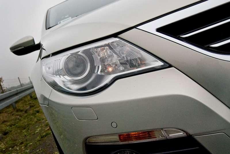 Passat CC raczej nie może bezpośrednio konkurować z bardziej prestiżowymi niemieckimi rywalami, ale trzeba przyznać, że znakomicie wywiązuje się z misji zarówno bycia komfortowym jak i coupe. Właśnie z coupe dziedziczy mocno opadającą linię dachu i smukłe szyby. Uroku dodają bezbramkowe drzwi, wzdłuż których ciągnie się mocne przetłoczenie. Patrząc na Passata CC z przodu najbardziej charakterystycznym elementem są agresywne światła. Cała sylwetka sprawia wrażenie bycia bardzo spójną i harmonijną, ale trochę brakuje jej zadziorności i pazura, które wyróżniają np. Audi A5. Może z pakietem R-line… Tak czy inaczej, z zewnątrz, nic w wyglądzie naszego Passata nie zdradza wrażeń i emocji jakie potrafi on zaoferować kierowcy. Dziś testujemy najmocniejszą i najszybszą wersję z silnikiem V6 i napędem na wszystkie koła. Z tej perspektywy potulny wygląd kryjący prawdziwy temperament tego auta można by uznać nawet za zaletę. Tylko od ciebie zależy komu i w jaki sposób zamanifestujesz niesamowite osiągi swojego coupe, a widok zdumienia na twarzy innych kierowców będzie bezcenny.