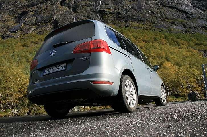 Właściwości jezdne nowego vana Volkswagena sprawdziliśmy w warunkach krętych i niekiedy stromych dróg. Sharan pod względem dynamiki i komfortu prowadzi się prawie tak dobrze, jak samochód osobowy. Pomimo gabarytów van dobrze trzyma się drogi i jest ekonomiczny. Na norweskiej trasie Sharan spalił ok. 6 litrów oleju napędowego na setkę. Elektroniczny hamulec postojowy w górskim terenie wspomagał ruszanie pod górę, zwiększając komfort i bezpieczeństwo. Adaptacyjne zawieszenie DCC, posiadające trzy tryby: Normal, Sport i Comfort, dostosowywało się do rodzaju drogi, zapewniając utrzymanie auta w osi jezdni. DCC sprawdziło się szczególnie w ciasnych zakrętach, nie pozwalając na zbytnie wychylanie auta i dobre trzymanie się drogi.