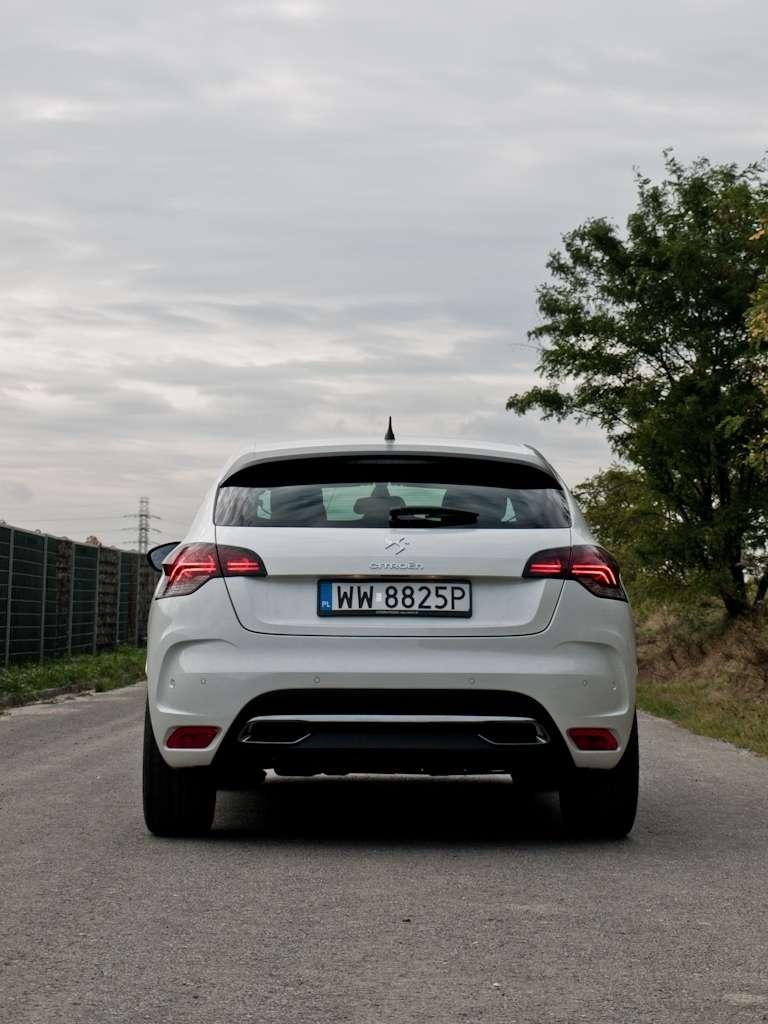 DS4 ma nawet swój unikalny znaczek – i to nie jeden – całe nadwozie jest bogato ozdobione logiem DS. Owszem nieco analogii do C4 widać w pasie przednim, szczególnie w przypadku identycznych reflektorów, ale na tym podobieństwa się kończą. Pierwszym wyraźnym sygnałem, że mamy do czynienia z czymś zgoła odmiennym od C4 jest podwyższone nadwozie DS4. Potem przychodzi czas na szczegóły. Idealnie wkomponowane w karoserię tylne drzwi, opadająca linia dachu przedłużona przez pokaźny spoiler, uwydatnione nadkola wypełnione cudownymi 19-calowymi felgami czy ledowe paski świateł do jazdy dziennej tworzą oryginalną całość. To motoryzacyjna awangarda w wykonaniu firmy, która od zawsze (choć z przerwami) miała smykałkę do niecodziennych kształtów.