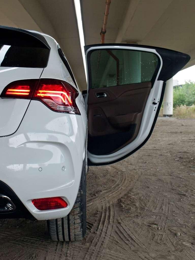 Każdy kto wychował się w epoce spodni dzwonów, wie, że styl potrafi czasem wziąć górę nad aspektami praktycznymi. W DS4 zmysłowe linie nadwozia dosyć mocno odbiły się na przestrzeni we wnętrzu. Z tyłu jest po prostu ciasno, a zajmowanie miejsca na kanapie wymaga sporej gibkości. Kształt mocno podciętych tylnych drzwi sprawia, że sam otwór jest maleńki. Próba wyjścia bez wyczyszczenia karoserii nogawką spodni jest z góry zdana na niepowodzenie. W zimie, kiedy samochód jest wiecznie brudny, to naprawdę może być spora niedogodność. Nawet większa niż brak możliwości otwarcia tylnych szyb, które najzwyczajniej w świecie nie mają się gdzie opuścić. Ale czemu nie da się ich nawet uchylić? Można by dodać do tego słabą widoczność do tyłu przez maleńką szybę. Piękno wymaga wyrzeczeń – rozumiem. I zapewne wszyscy jesteśmy gotowi na wyrzeczenia w przypadku wcześniej wspomnianej Brery czy RCZ-ta – pięknych coupe dedykowanych kierowcy. Ale nie jestem do końca pewien czy tyczy się to również DS4.