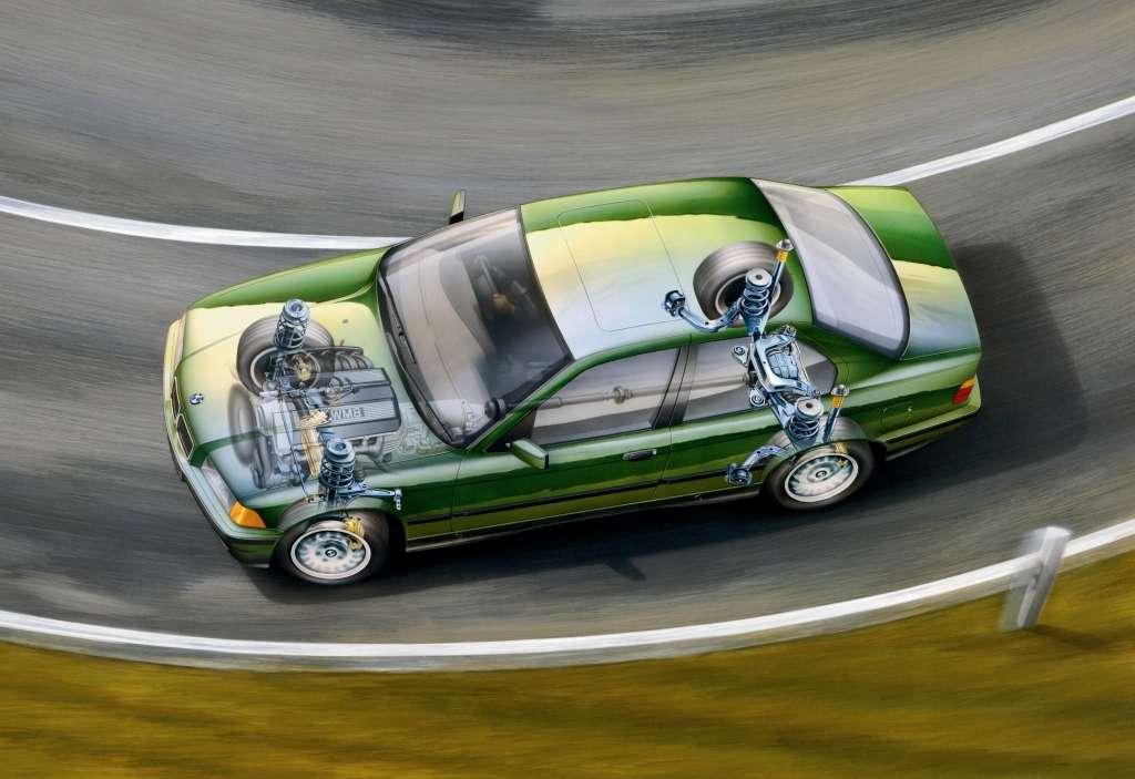 BMW E36 jest następcą kultowego E30. Nowy model pod każdym względem przewyższył poprzednika. Posiada bardziej funkcjonalną, przestronniejszą i lepiej wykończoną kabinę, nowoczesne jednostki napędowe oraz wielowahaczowe zawieszenie tylnej osi, które ułatwiło prowadzenie samochodu na granicy przyczepności.