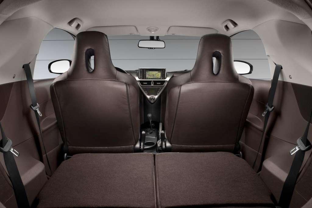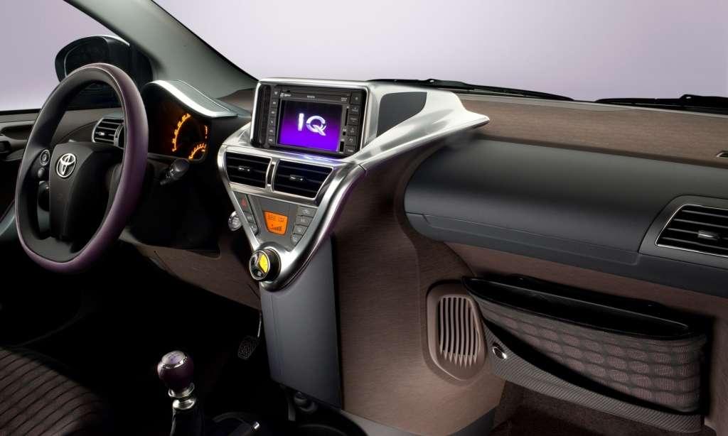 Karoseria modelu iQ ma zaledwie 2,98 m długości. Jedynym realnym konkurentem dla najmniejszej Toyoty, pomijając mikrosamochody oraz japońskie kei-cary, jest więc smart fortwo. Toyota okazuje się dużo bardziej funkcjonalna od niemieckiego konkurenta. Przede wszystkim, w co trudno uwierzyć, można nią przewieźć cztery osoby! Optymalnym układem jest 3 (dorośli) + 1 (dziecko), co jest następstwem rozplanowania kabiny. Z przodu zamontowano dwa pełnowymiarowe fotele, wnętrze jest szerokie, a przestrzeni nad głowami nie brakuje. W drugim rzędzie ilość miejsca jest znacznie mniejsza, szczególnie za fotelem kierowcy. Osoba zasiadająca po prawej stronie będzie mogła poczuć się swobodniej.