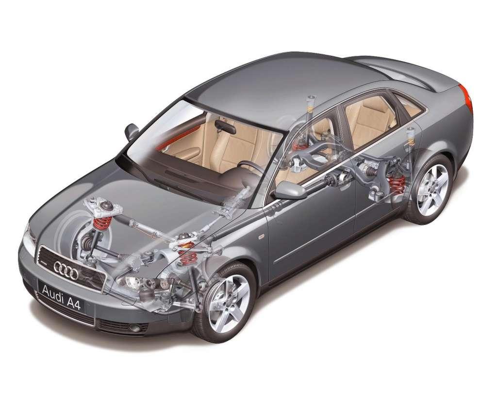 Wielowahaczowe zawieszenie z aluminiowymi elementami gwarantuje świetną trakcję w każdych warunkach, jednak jest wrażliwe na stan polskich dróg. Najszybciej zużywają się elementy prowadzące przednie koła. Spora liczba wahaczy podnosi koszt remontu. Co prawda można kupić bardzo tanie zamienniki, ale z doświadczeń użytkowników A4 wynika, że lepsze efekty (czyt. spokój na kilka lat) przynosi sięgnięcie po droższe, markowe produkty. Do niezniszczalnych nie należą też przekładnie kierownicze. Nadwozie zostało świetnie zabezpieczone przed korozją. Rdzawe wykwity zwykle świadczą o barwnej przeszłości danego egzemplarza. Warto rzucić okiem także na szczeliny nadwozia. Fabryka w Ingolstadt zadbała, by odstępy między elementami były niewielkie i równe. Najmniej udany okazuje się lakier, który jest podatny na zarysowania.