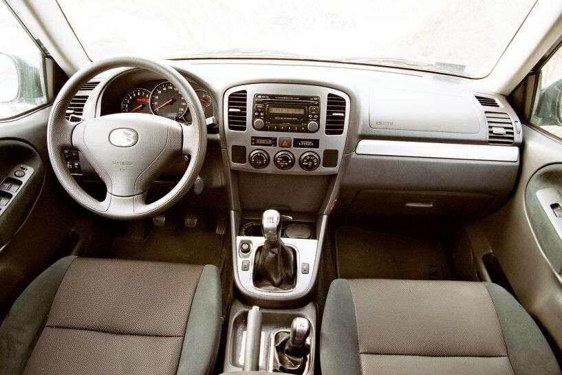 Niewielka liczba przełączników oraz prosty wystrój wnętrza korzystnie wpływają na ergonomię. Wielu użytkowników ceni Grand Vitarę za wysoką pozycję za kierownicą, która ułatwia obserwowanie drogi i daje poczucie bezpieczeństwa. Dosyć złudne, co wykazał test EuroNCAP. Czołowe uderzenie doprowadziło do poważnej deformacji nadwozia. Mimo braku bocznych poduszek powietrznych, Grand Vitara dobrze wypadła w teście zderzenia bocznego. Dwie czołowe poduszki powietrzne były wyposażeniem standardowym, podobnie jak elektrycznie sterowane przednie szyby i lusterka oraz kierownica z regulacją wysokości. ABS, klimatyzacja, podgrzewane fotele, system audio oraz regulowany na wysokość fotel kierowcy trafiały do droższych wersji.