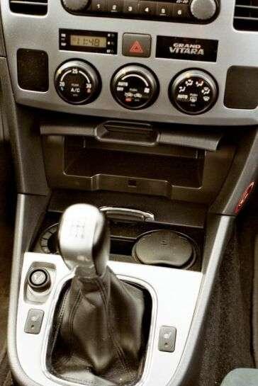 Wnętrza Grand Vitar są spartańskie. Trzeba zaakceptować twardość tworzyw oraz wszechobecne czernie i szarości. Najbardziej surowe są auta z pierwszych lat produkcji. Otrzymywały suwakową regulację wentylacji i ogrzewania, dwuramienne kierownice, prosty panel wskaźników bez komputera pokładowego, manualną klimatyzację i mało wyszukany radioodtwarzacz, za który w Polsce przychodziło dopłacić astronomiczne 2000 zł. Niektóre wnętrza otrzymały drewnopodobne inkrustacje, ale „plastikowe drewno” trudno uznać za dodatek poprawiający estetykę.