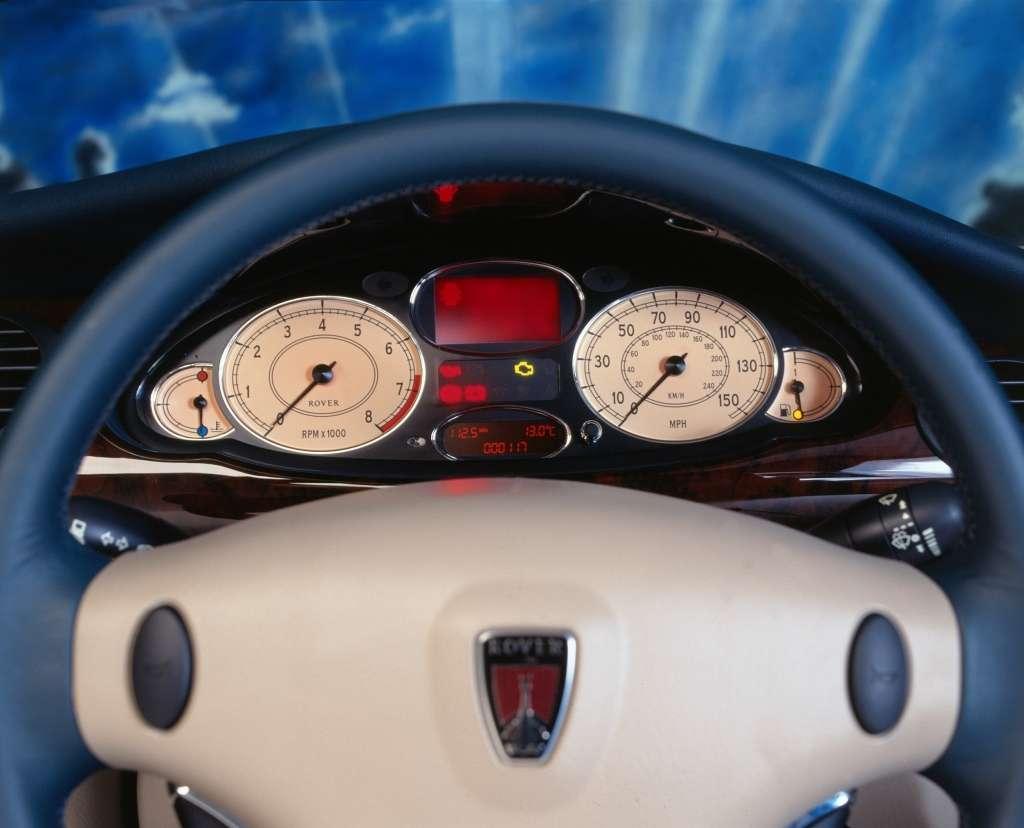 Wnętrze Rovera 75 wykończono w stylu typowym dla brytyjskich limuzyn – nie brakuje skóry, drewna i chromu. Akcenty w stylu retro to świetny kamuflaż. Pod tapicerką kryje się nowoczesna elektronika i wiązka multipleksowa – bliźniacza ze stosowaną w BMW. Oczywiście można też znaleźć powody do narzekania. Intensywne czerwone podświetlenie kokpitu nie wygląda najładniej, konsola środkowa jest wykonana z tandetnego tworzywa, a schowek wypełnia zmieniarka CD.