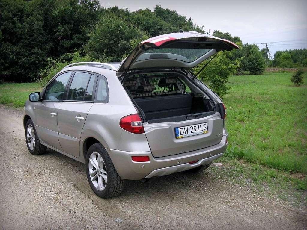 Obsługa opcjonalnej nawigacji za pomocą pokrętła pomiędzy fotelami jak w BMW nie należy do najprostszych, ale na co dzień nieco bardziej mogą zmęczyć drobne przyciski na konsoli centralnej. Prócz nich wadą jest niewielka ilość miejsca na tylnej kanapie i przeciętny bagażnik o pojemności 450l. Zaokrąglony tył ogranicza jego możliwości przewozowe, ale za to humor poprawia coś innego. Tylna klapa jest 2-częściowa. Można otworzyć samą szybę, by szybko wrzucić do kufra sześciopak piwa zanim żona zauważy, lub otworzyć dodatkowo dolną część bagażnika, żeby włożyć coś większego. Najlepsze jest to, że próg załadunku praktycznie nie istnieje, a sam bagażnik jest dwupoziomowy i ma trochę schowków. Wyposażenie samochodu też przeważnie jest całkiem bogate. A jak Renault Koleos radzi sobie na drodze?