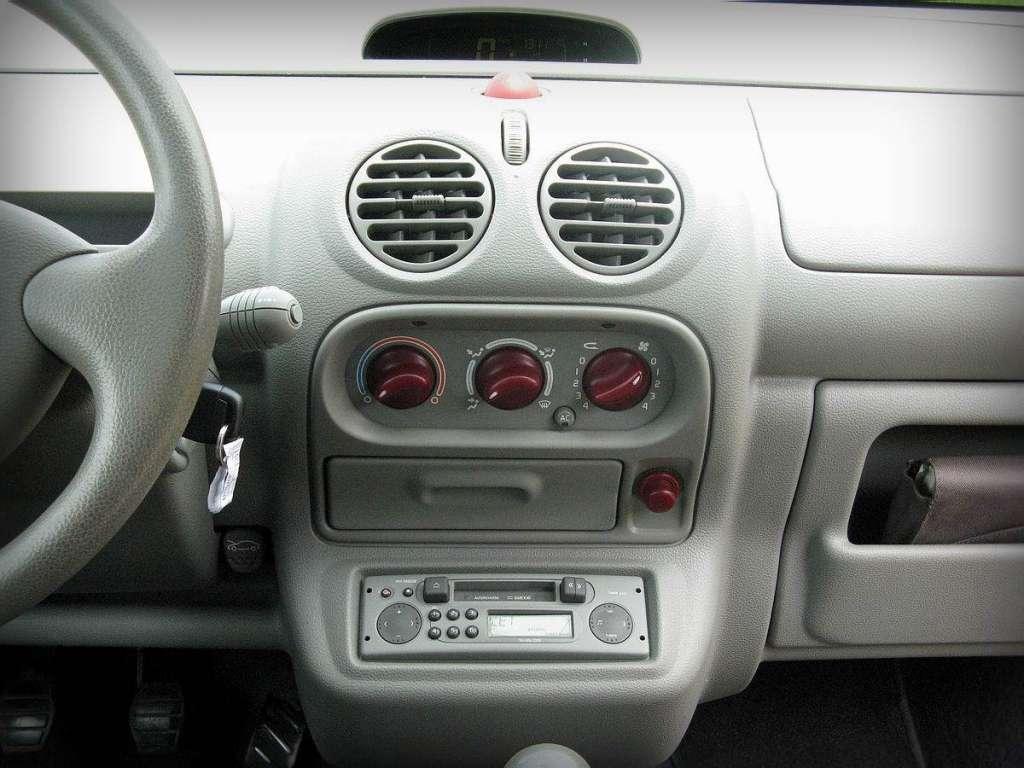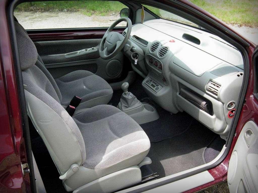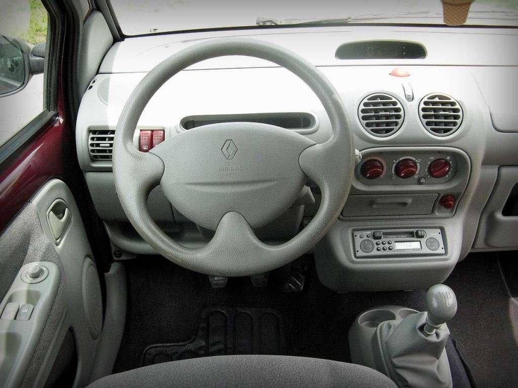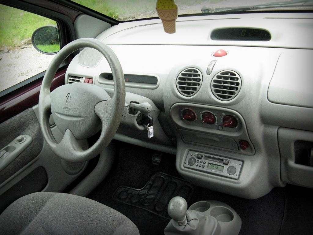 Gdyby przymknąć oko na materiały użyte w kabinie i ich spasowanie, to wnętrze napawa optymizmem. Jest żywe i kolorowe, miejscami nawet wręcz nieco kiczowate, ale w końcu cały projekt auta jest zabawny i barwny. Czy kobiecy? To już nie mnie oceniać. Szkoda tylko, że ergonomia nieco kuleje. Szukanie niektórych przycisków przypomina teleturnieje – gracz zgaduje odpowiedź, bo nie ma bladego pojęcia jaka jest poprawna. Ponadto regulacja wysokości fotela jest niewygodna – podobnie jak obsługa zewnętrznych klamek, a radio zostało umieszczone tak nisko, że trzeba się do niego schylać. Mimo tego niektóre szczegóły są urocze – przycisk świateł awaryjnych wygląda jak guma kulka, a pokrętła są pomalowane w kontrastowym kolorze. Nie da się tylko zapomnieć o cięciach kosztów. Na drzwiach straszą gołe blachy, na zderzaku widać śruby, a przednią szybę wyciera tylko jedna wycieraczka – na szczęście w przeciwieństwie do Fiata Uno radzi sobie całkiem nieźle. Wystająca antena przy przednim słupku przypomina też o tym, że projekt nie jest najświeższy. Ale to nie znaczy, że odpycha – wręcz przeciwnie. Twingo ma podbijać miasta i wychodzi mu to świetnie, dzięki olbrzymim powierzchniom szklanym – zza „kółka” widać wszystko i nawet czujniki parkowania są tu zbędne. Niestety w ogóle nie widać przodu auta i w tym przypadku trzeba kierować się szóstym zmysłem – zwis na szczęście jest bardzo krótki. Przydatna jest również cała masa schowków – znajdują się z tyłu, w drzwiach, konsoli i przed pasażerem, jednak ten ostatni nie jest zbyt pojemny. Jest też drobny gadżet, który sugeruje, że auto powinny pokochać panie – w przeciwsłonecznym daszku kierowcy znajduje się lusterko, a w małych autach z tamtej epoki to rzadki dodatek.